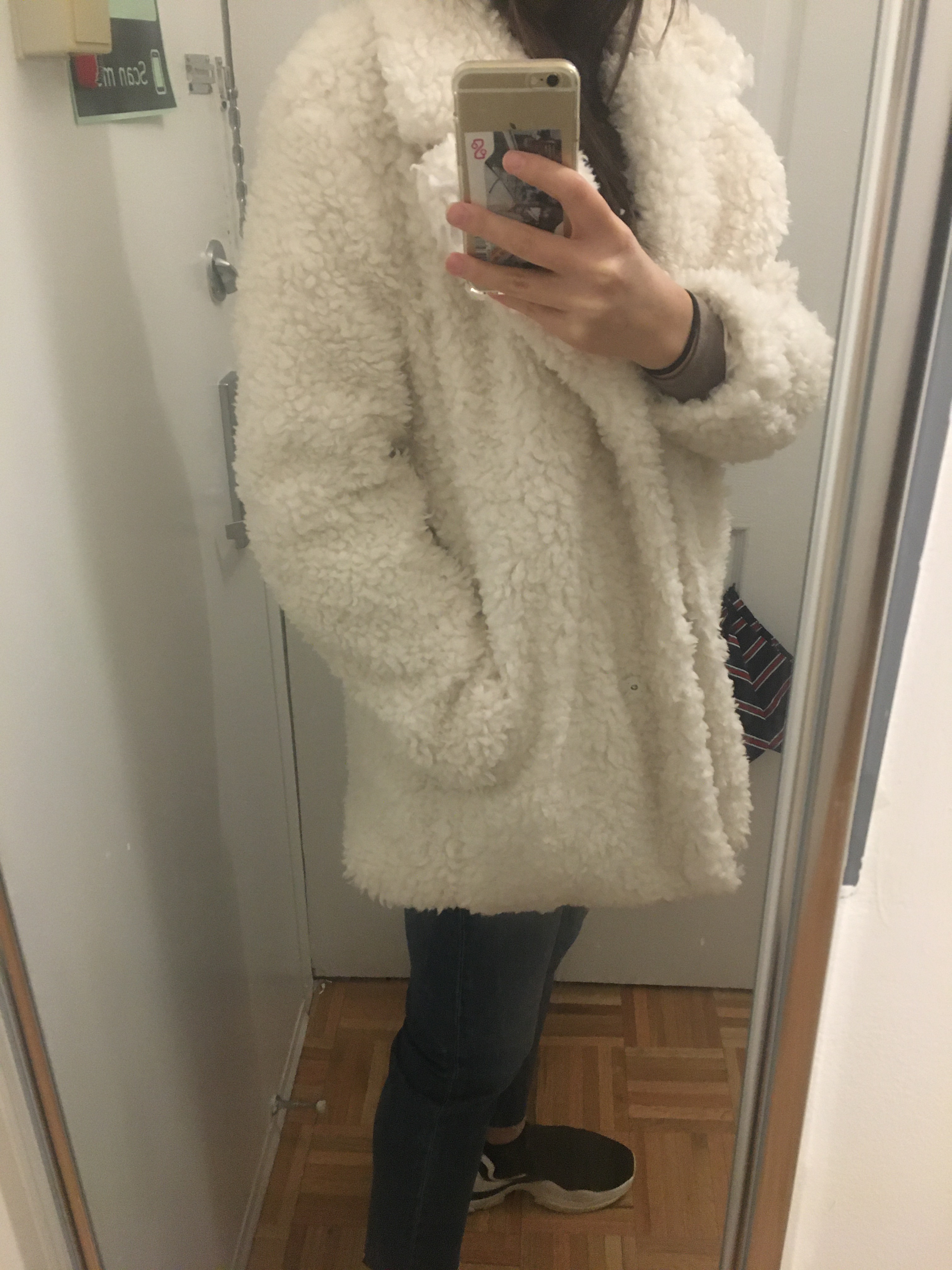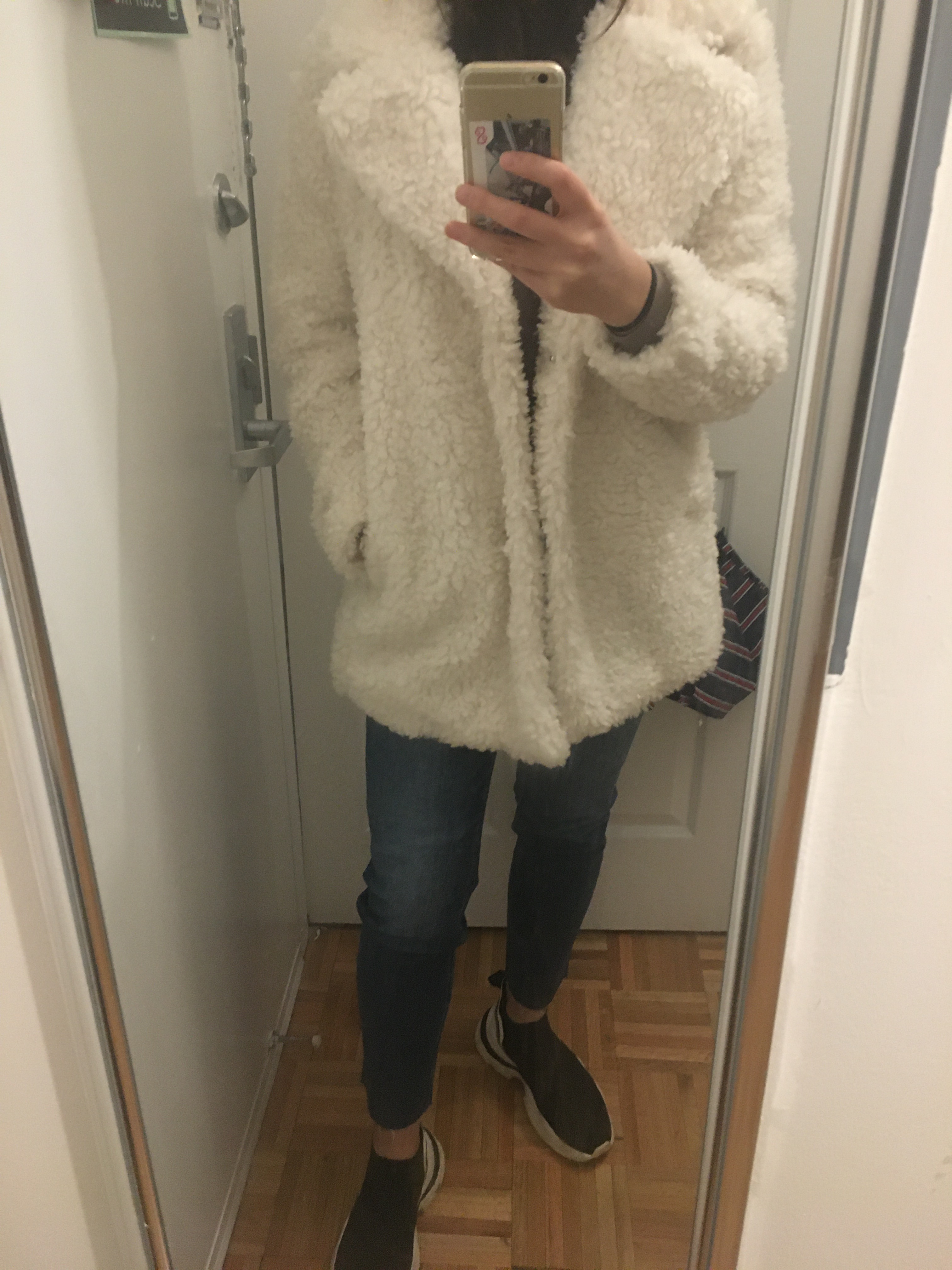 Probably – unfortunately, I couldn’t find the same item anymore, but I did link a similar one that’s a bit pricier and better quality. Simply put, I see a lot of girls around the city with these teddy coats on and they look so chic that I wanted one for myself. Granted, theirs are probably much nicer quality and maybe made out of real fur, but I’m good with this cheaper alternative. As it appears, teddy coats are amazing. They are so cozy and soft like you are wearing a cloud or at least, a very snuggly blanket. From the look of the ‘fur’ you can tell that it’s not an expensive one, but I just wanted one to try. I think teddy coats are a fad, and definitely not a classic, so I don’t think it’s worth it to buy an extremely expensive teddy coat.